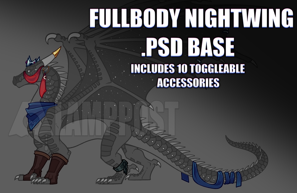 A high resolution file (4600px x 3150px) available for use as a base for your OCs, designs, and adopts! Comes as .PSD with easy to color layers and 10 toggleable accessories. The .PSD is compatible with any program that can use .PSD files. Purchase of the base includes PNG files of separated lineart in case your program cannot load a PSD file. The layers on the PSD are formatted so that you should just be able to draw directly onto the layer to fill in the blocked out color area (layer opacity locked)!